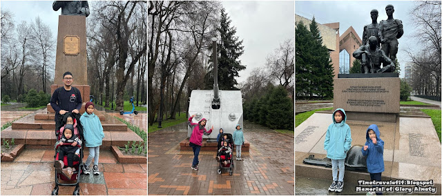 Dan kemudian kami berjalan ke arah 28 Panfilov Guardsmen Park yang terletak 50 meter ke arah belakang church. Dikenali juga dengan nama Memorial of Glory. Walau jalan ketika ini basah dek hujan renyai yang turun tadi but the kids still enjoy the walk dalam kesejukan.